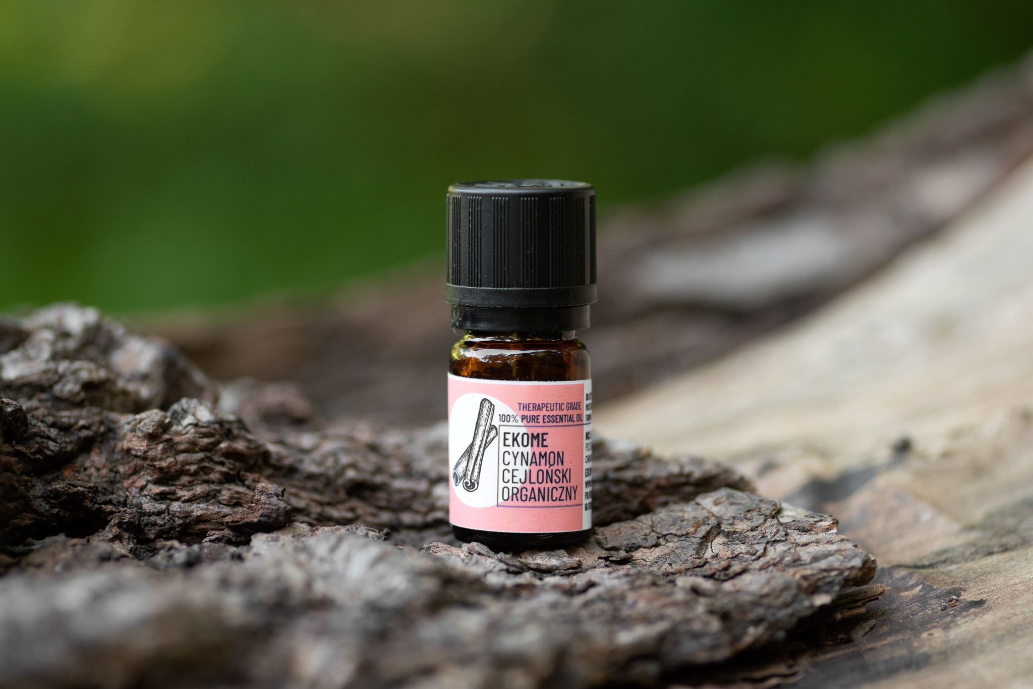 Ekome organiczny olejek eteryczny cynamon cejloński (Cinnamomum verum). 100% naturalny olejek bez dodatków.