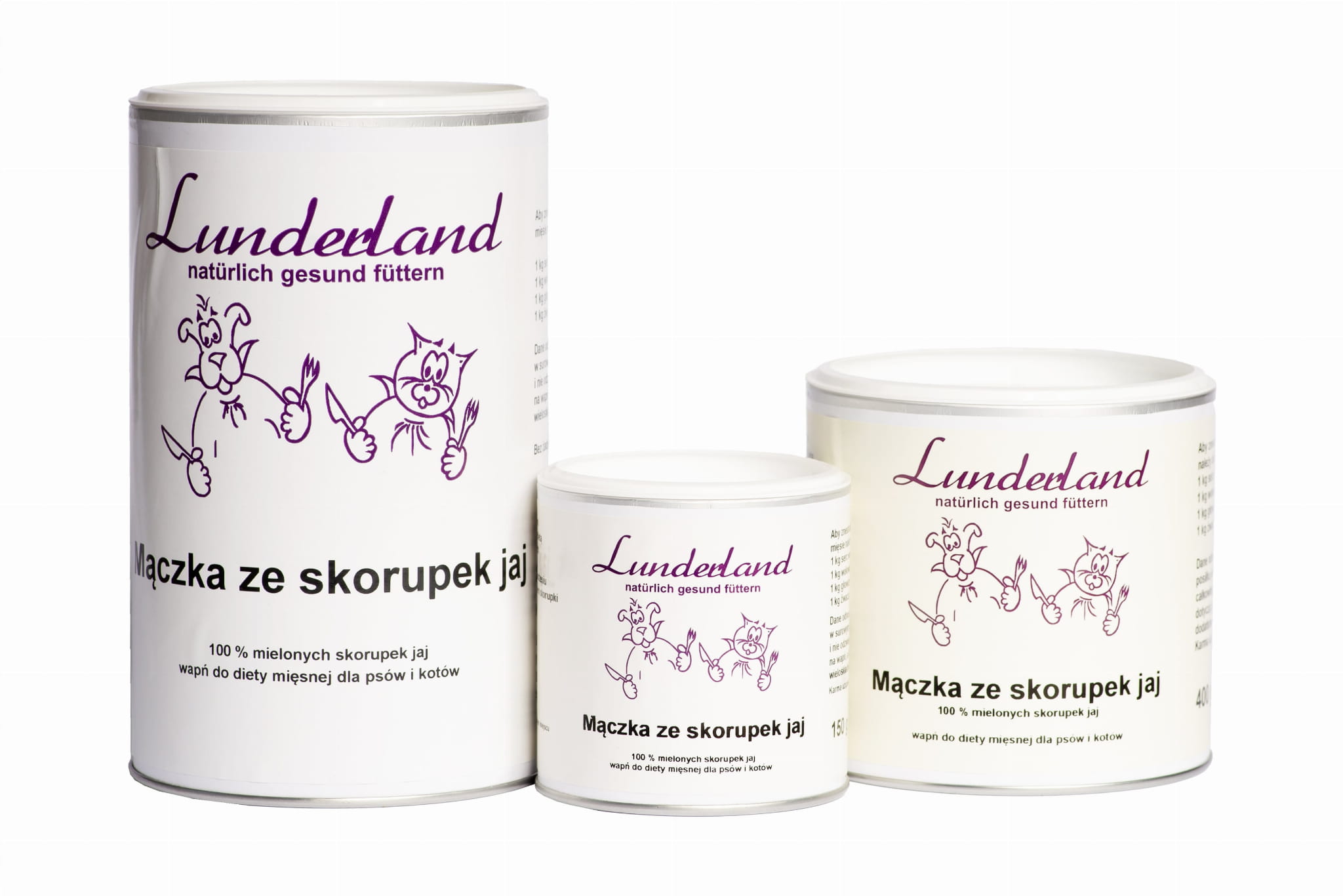 Dzięki temu drobno zmielona mączka ze skorupek jaj Lunderland świetnie nadaje się do uzupełnienia diety psów i kotów w wapń.