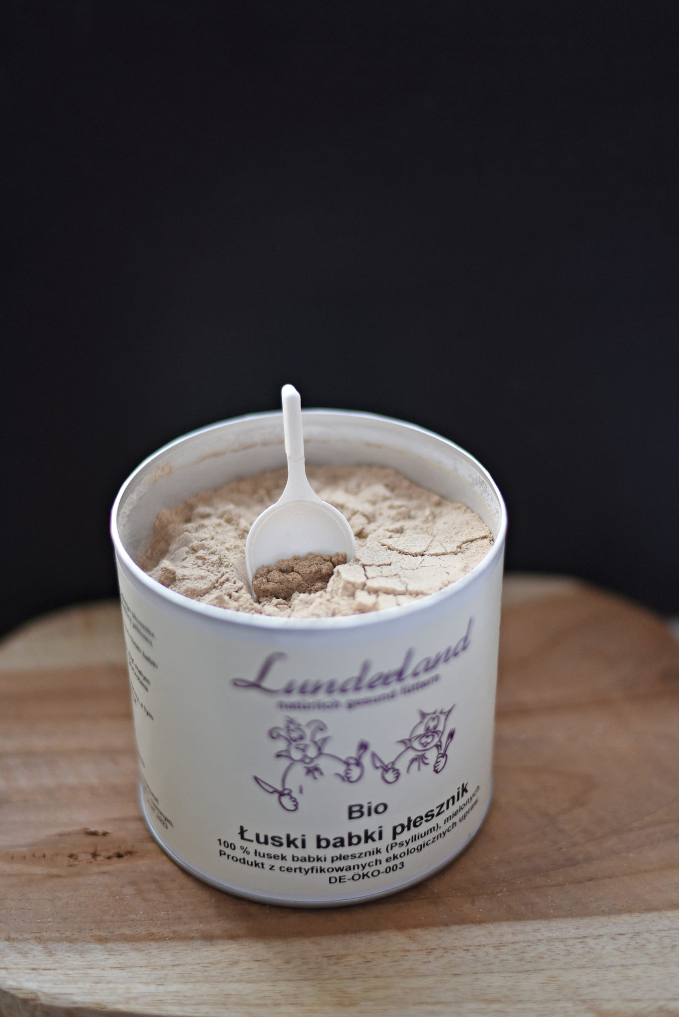 Lunderland organiczne łuski babki płesznik BIO to delikatna mączka, która jest czystym, naturalnym produktem wytwarzanym z zewnętrznej powłoki nasion babki płesznik, znana także jako Psyllium. Łuski babki płesznik zawierają dużo śluzu i rozpuszczalnego błonnika, które działają prebiotycznie w jelicie i wspierają zdrową florę jelitową.