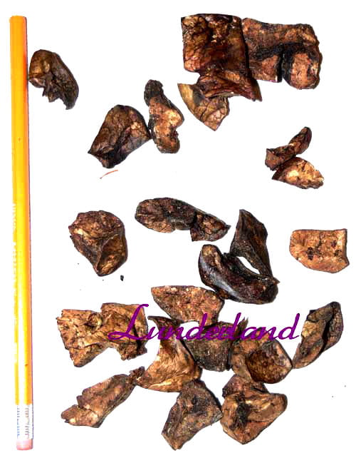 Kostki mają wymiary od 1 do 2 cm i zawierają suszone, sprasowane płuco.