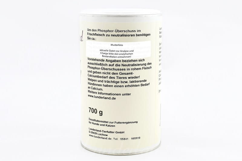 Dawkowanie: Aby zneutralizować nadmiar fosforu w świeżym mięsie należy dodać: 1 kg wołowe serce: około 7 g wapnia z alg morskich. 1 kg wołowiny lub tłuszczu wołowego: 7 g wapnia z alg morskich. 1 kg głowizny: około 6 g wapnia z alg morskich. 1 kg żwacza: 1,5 g wapnia z alg morskich. 1 kg żwacza bydlęcego z treścią pokarmową: dodać 0,2 g wapnia z alg morskich